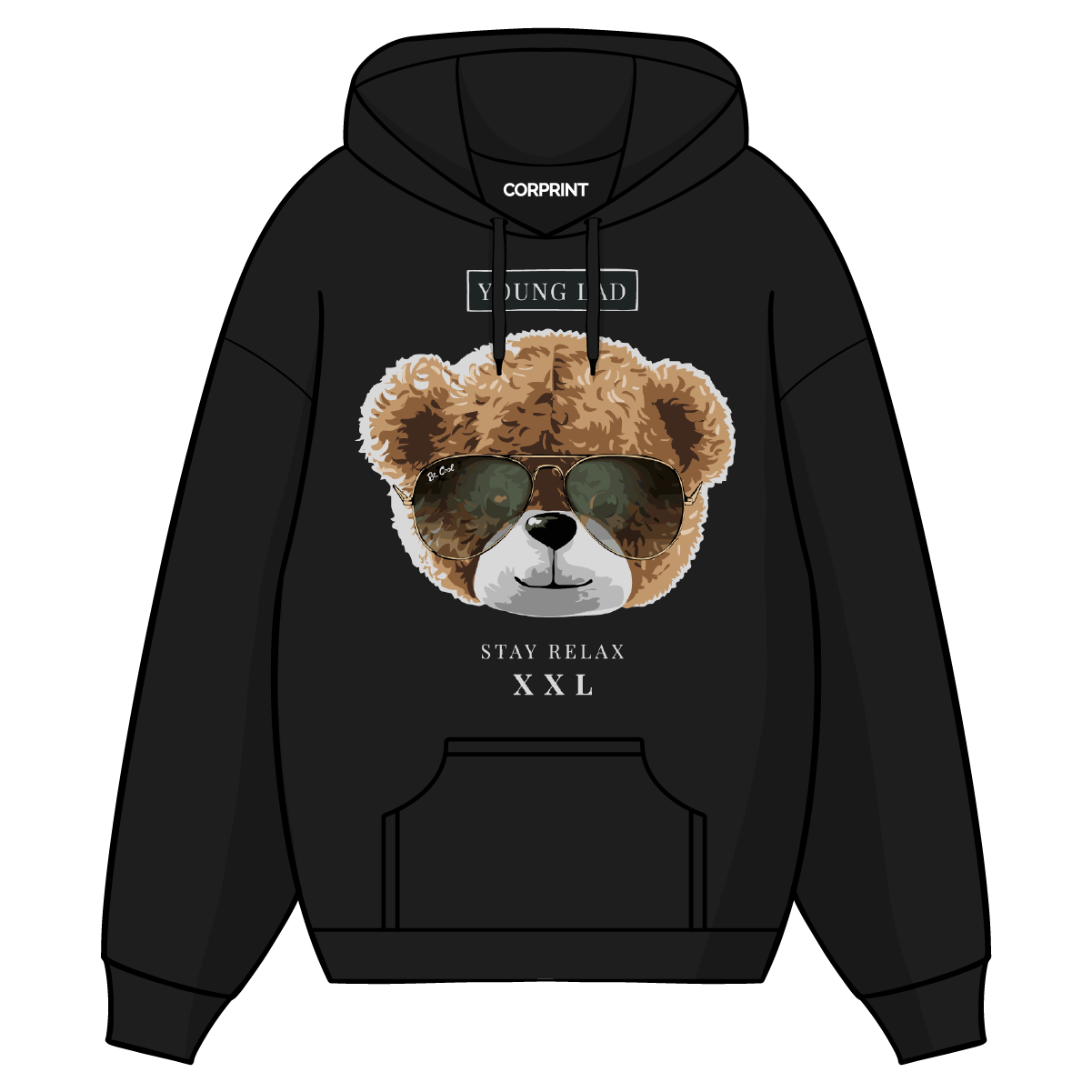 - Sudadera con Capucha unisex de manga corta, corte recto y cuello redondo.